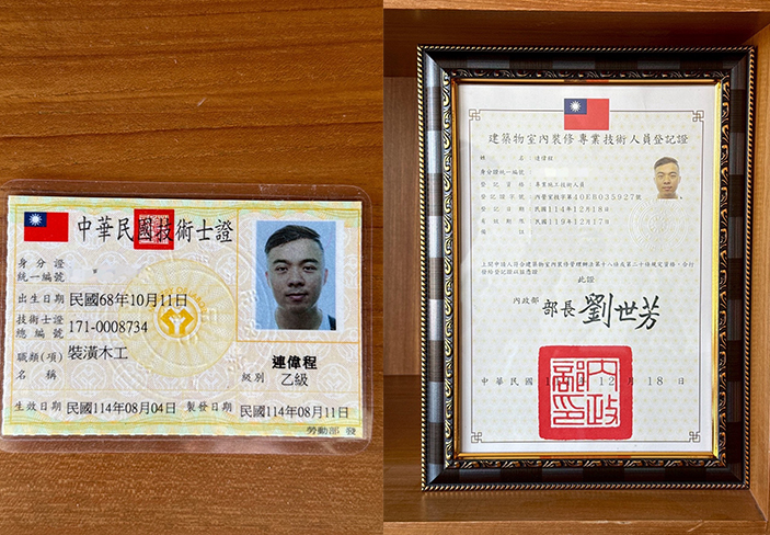 提供建築物室內裝修工程管理服務,持有乙級技術士證照。